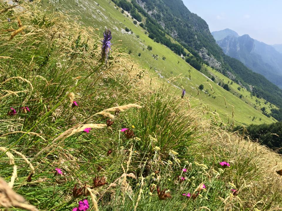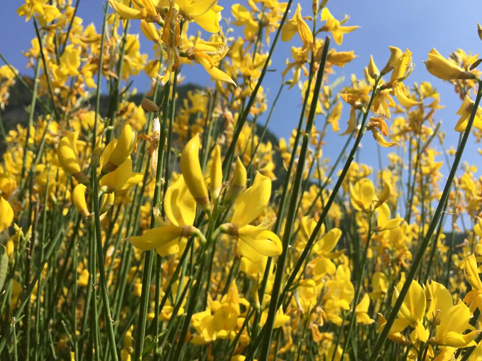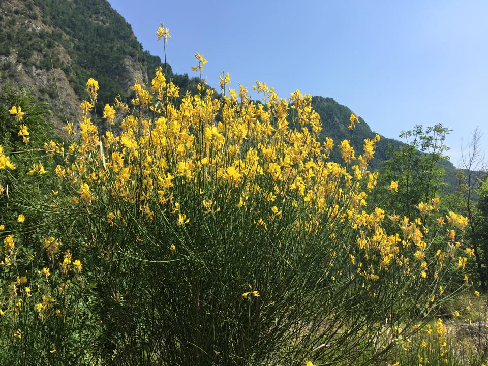 Zanót (Cytissus praecox) pillangós virágú különleges kinézetű lombjával virágzáson kívül is érdekes alacsony cserje. Ez a példány nyár közepén is ontja virágait az apuai alpokban.