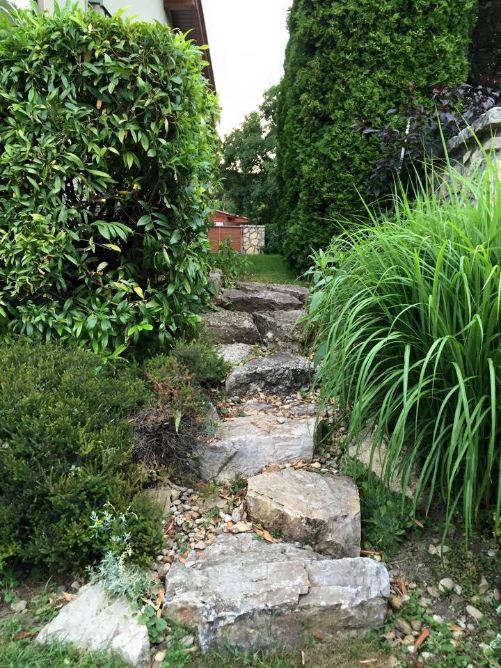 Egy, a minimalizmus jegyében született kert Balatonfüred anno 2011. A kerttervek Kovács Enikő ifjú kerttervező munkája: