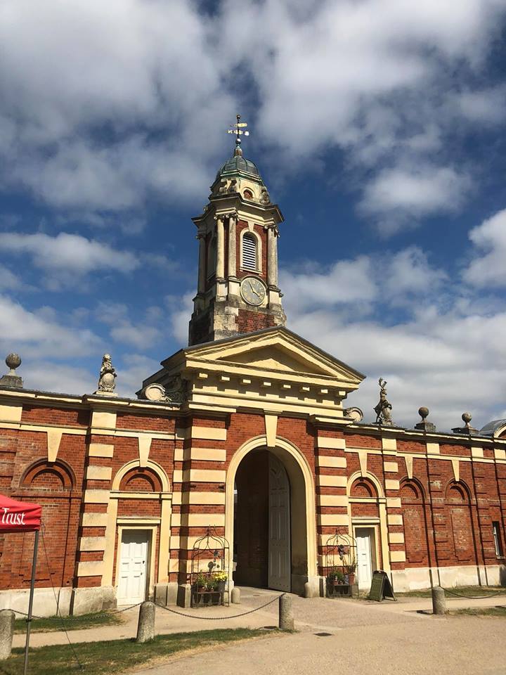 A kastély előtt barokk kert, angol tájképi kert legelős rétekkel, háziállatokkal, romantikus tóval. A háttérben a középkori erődített várkastély romjaival. 1967 óta Világörökségi helyszín.
