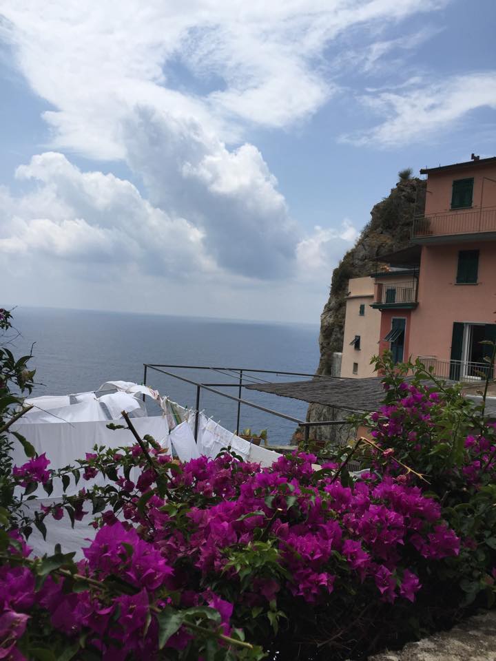 Cinque Terre (jelentése öt föld) a Ligur-tenger partjának egyik zord és nehezen megközelíthető része La Spezia városától északnyugatra, Porto Venere és Levanto települések között. A kiemelt képen a városka egy része (Magyar wikipédia / English wikipédia).