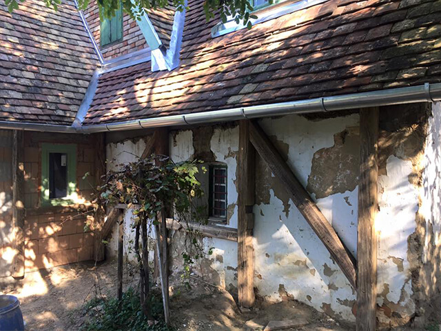 A felső rész ráépítése után került sor a régi ház favázasítására.