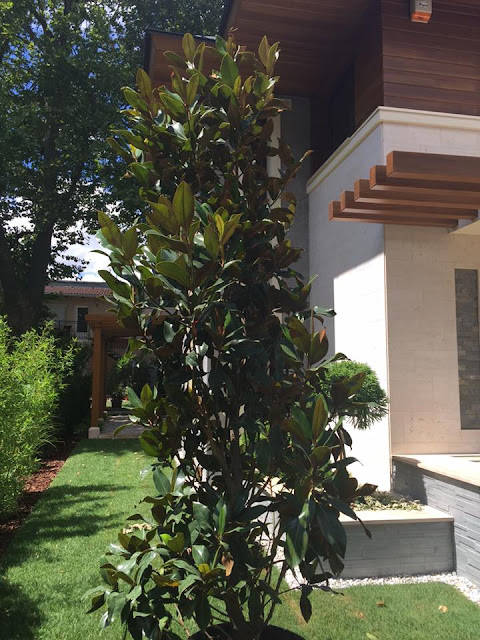 … és egy méretes örökzöld liliomfa (Magnolia grandiflora „Gallisiniensis”)