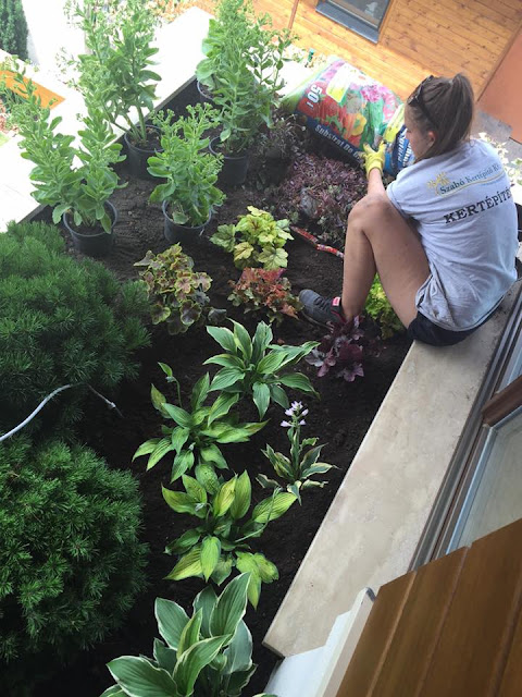 Negyedik lépés: az emeleti hálószoba előtti mini tetőkert beültetése.