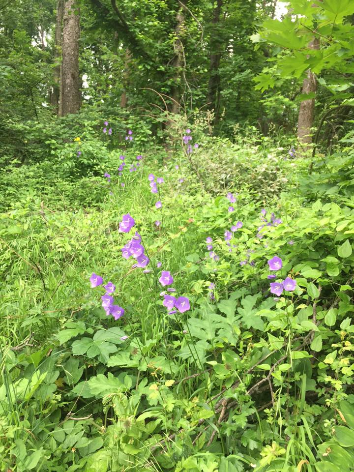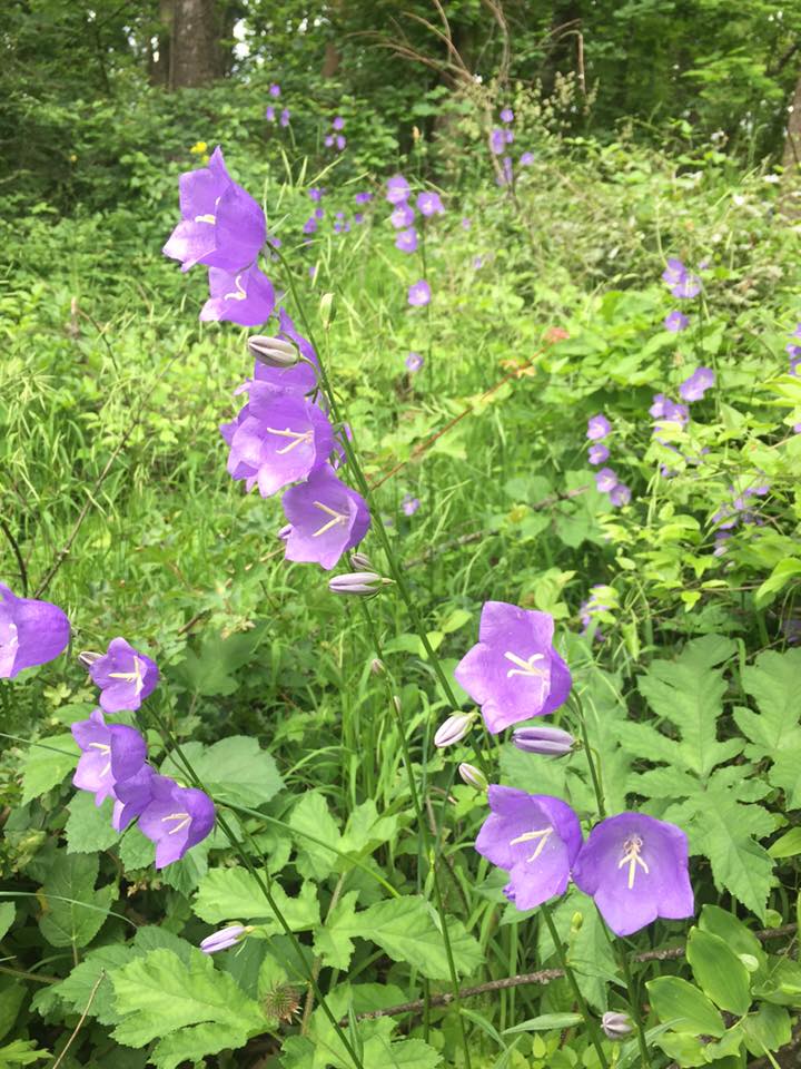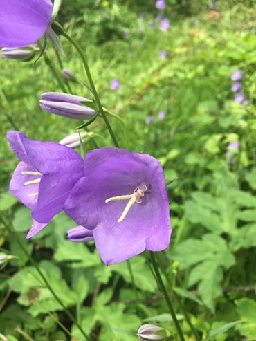 Baracklevelű harangvirag (Campanula persicifolia) kecses virágai a budai hegyekben.