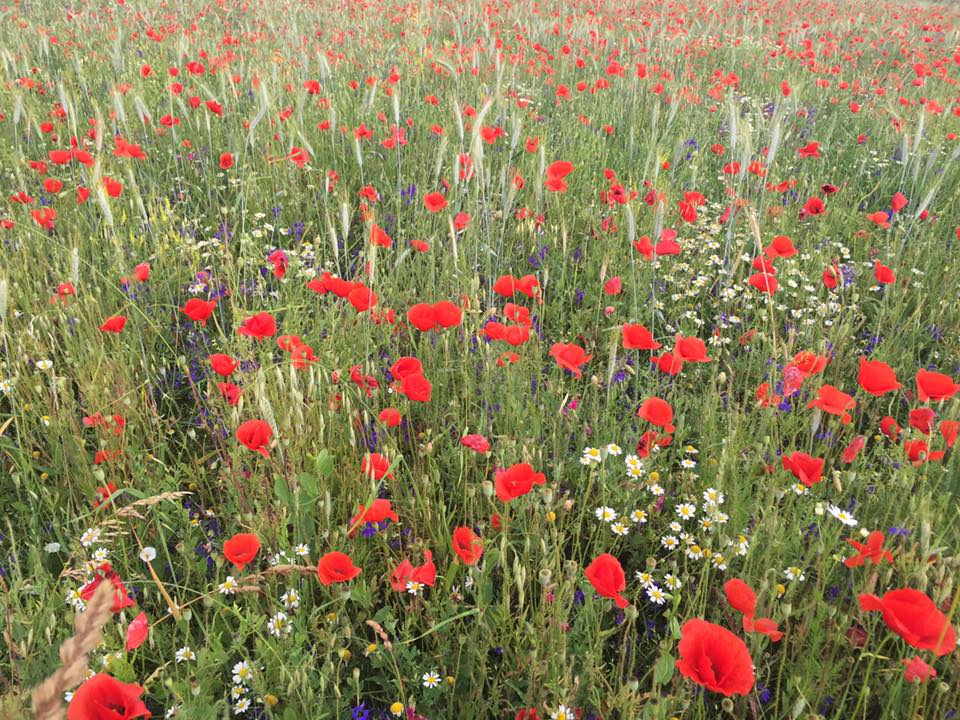 A nyár kezdetén már mindenfelé virul a vadvirágos tarka rét. Például tele pipacsokkal – ahogy mi szeretjük. Még albínó pipacs (papaver) is akad.