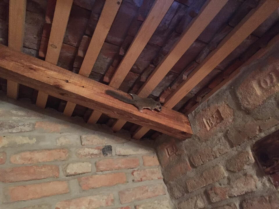 Éjszaka komoly rajcsúrozást tudnak csapni a tető alatt. A tárolóban face to face szoktunk találkozni, ma éppen egy kölyökkel. Nagyon jó fejek, kedves kis pofijuk van nagy csodálkozó szemekkel.