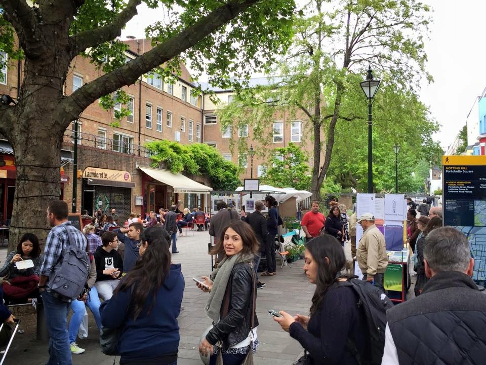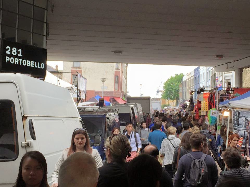 A szombati régiség piac forgataga. A piac története 150 évre tekint vissza. A Notting Hill negyed legfőbb vonzereje napjainkban.