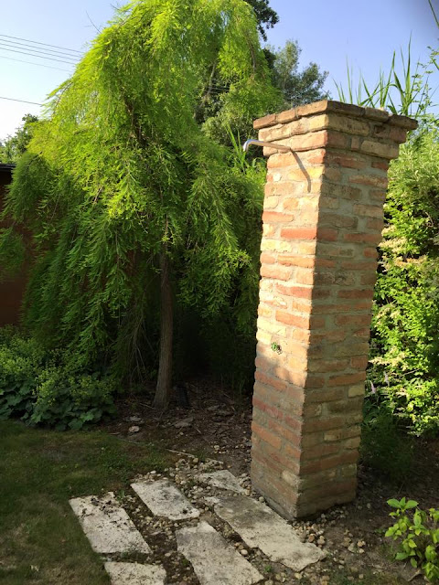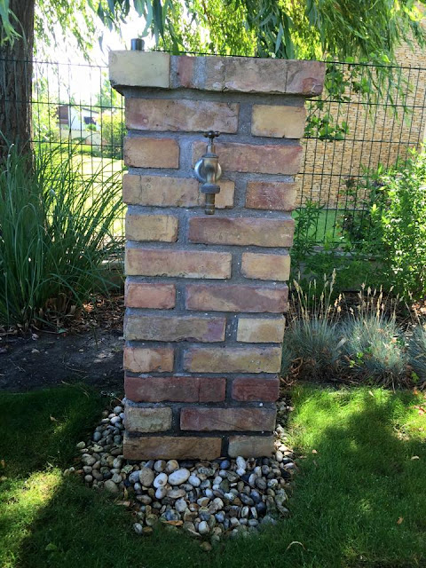 A kerti csap és a zuhany egyszerű bontott téglából készült: