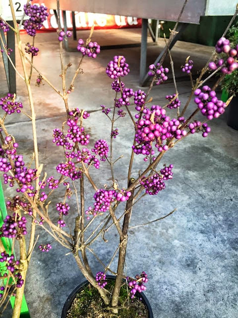 Lilabogyó (Callicarpa bodinierii Profusion) különleges meghökkentő színű, kinézetű bogyófüzérét ősszel hozza. Évközben semleges cserje a többi között.