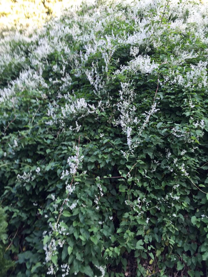 Tatár (kínai) iszalag (Fallopia aubertii) – Rendkívül gyorsan növő évelő kúszónövény. Évente képes 3-6 métert nőni. Fehéres virágait nyár közepétől hozza, ritkán még késő ősszel is virágba borul. Mint most idén így az ősz derekán.