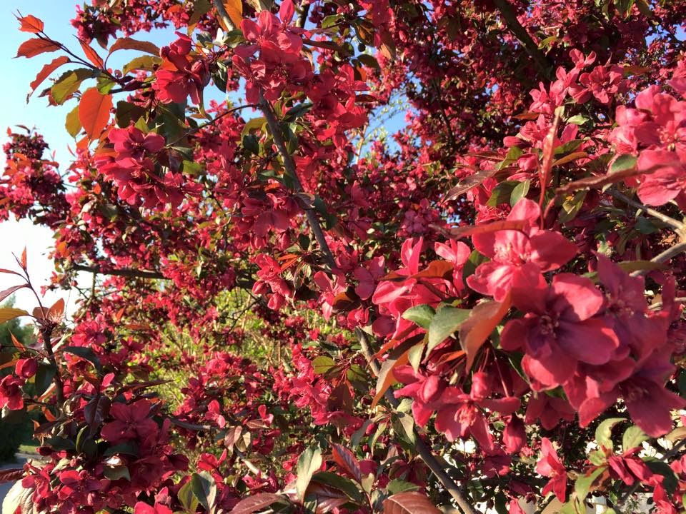 Piroslevelű díszalma (Malus purpurea Royalty), kistermetű, piros levelű, virágú és termésű díszfa. Gyönyörűen díszíti a kerteket.