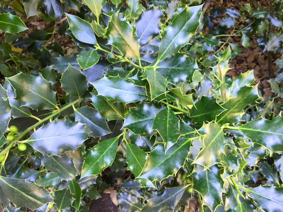 Magyal (Ilex aquifolium) örökzöld, árnyékos helyen is kivállóan fejlődő bokor vagy lassan növő fácska. Télre bogyói pirosra színeződnek.