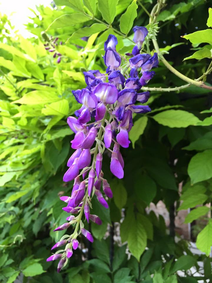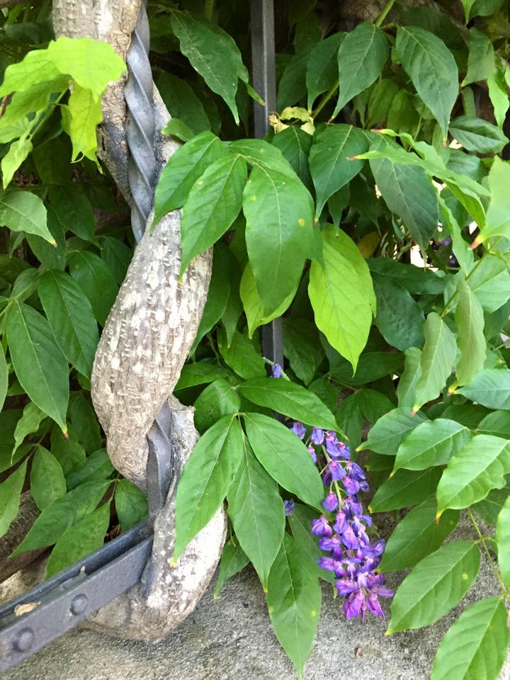 Lila akác (Wisteria sinensis) kedvelt kúszónövény hazánkban is. A sienai városkapu melletti kertben éppen másodvirágzásban van. Fő virágzási ideje áprilisban lombfakadás előtt élvezhető. Ekkor lila, ködszerű képet fest látványa.