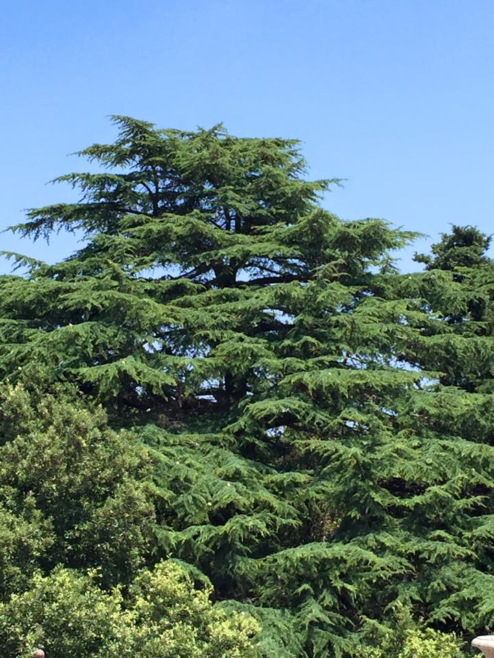 Libanoni cédrus (Cedrus libanii) impozáns örökzöld fenyőféle. Hazánkban igen ritka, fiatalkori fagyérzékenysége miatt. Libanon állam zászlaján megjelenő, mutatós hordó formájú tobozt nevelő fenyő. Ez a szép példány Napóleon elbai kastélyának kertjében él.
